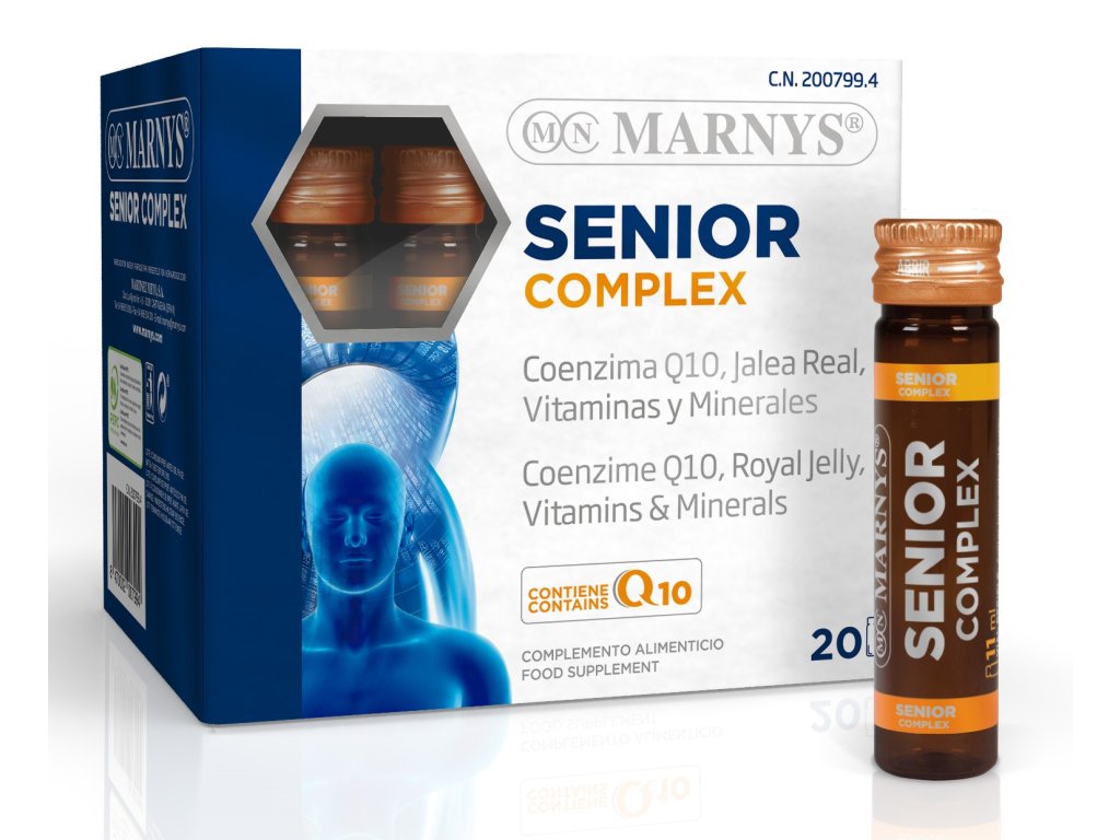 MARNYS® Senior Complex to unikalne połączenie koenzymu Q10, pyłku pszczelego, minerałów i witamin A, C, D, E oraz kompleksu witamin z grupy B. Wspomaga odżywianie i energię osób starszych.